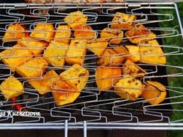 Залишити на кілька годин, смажити на грилі.
